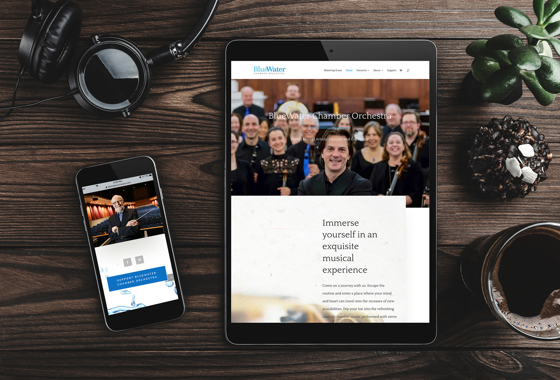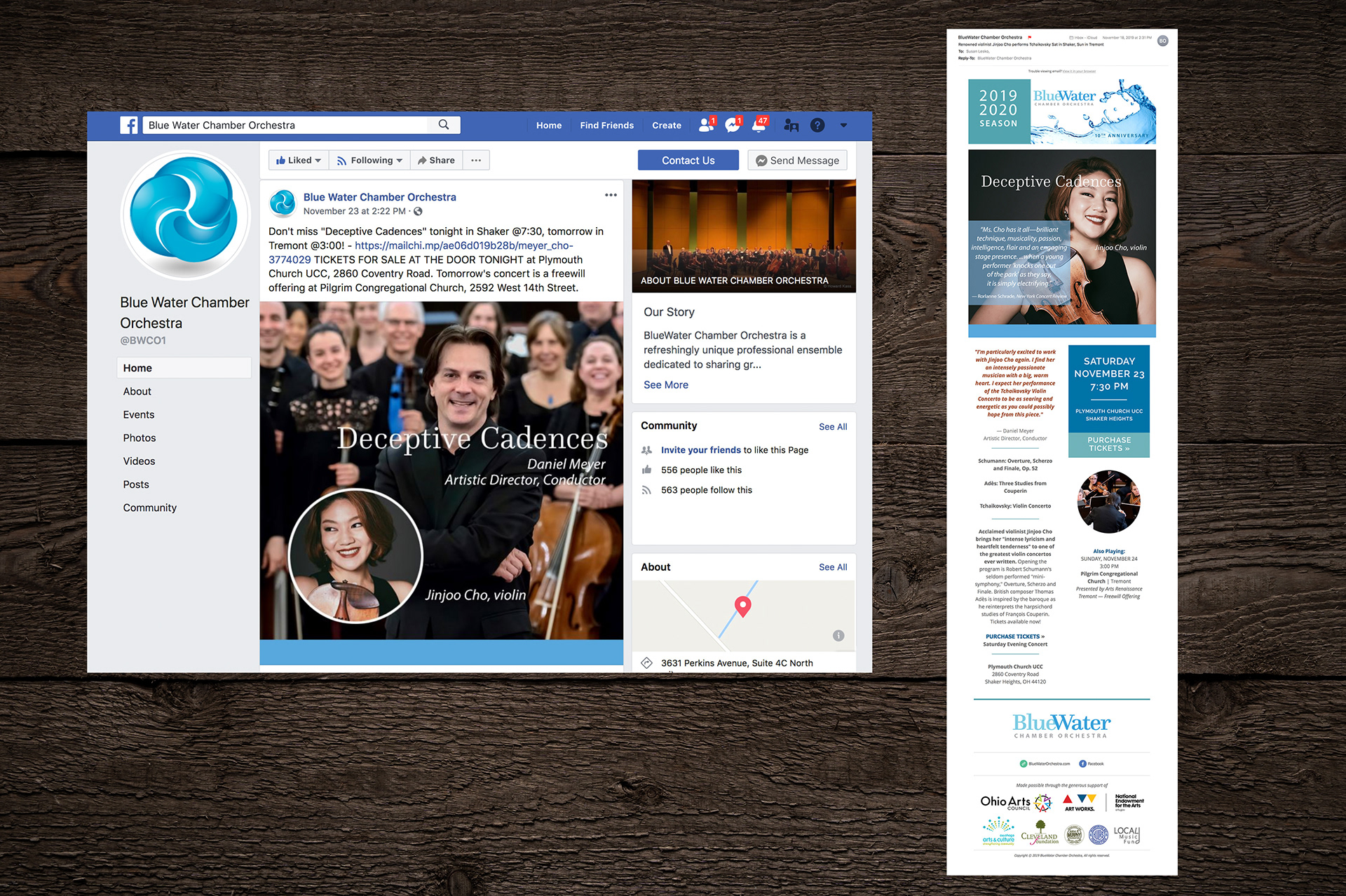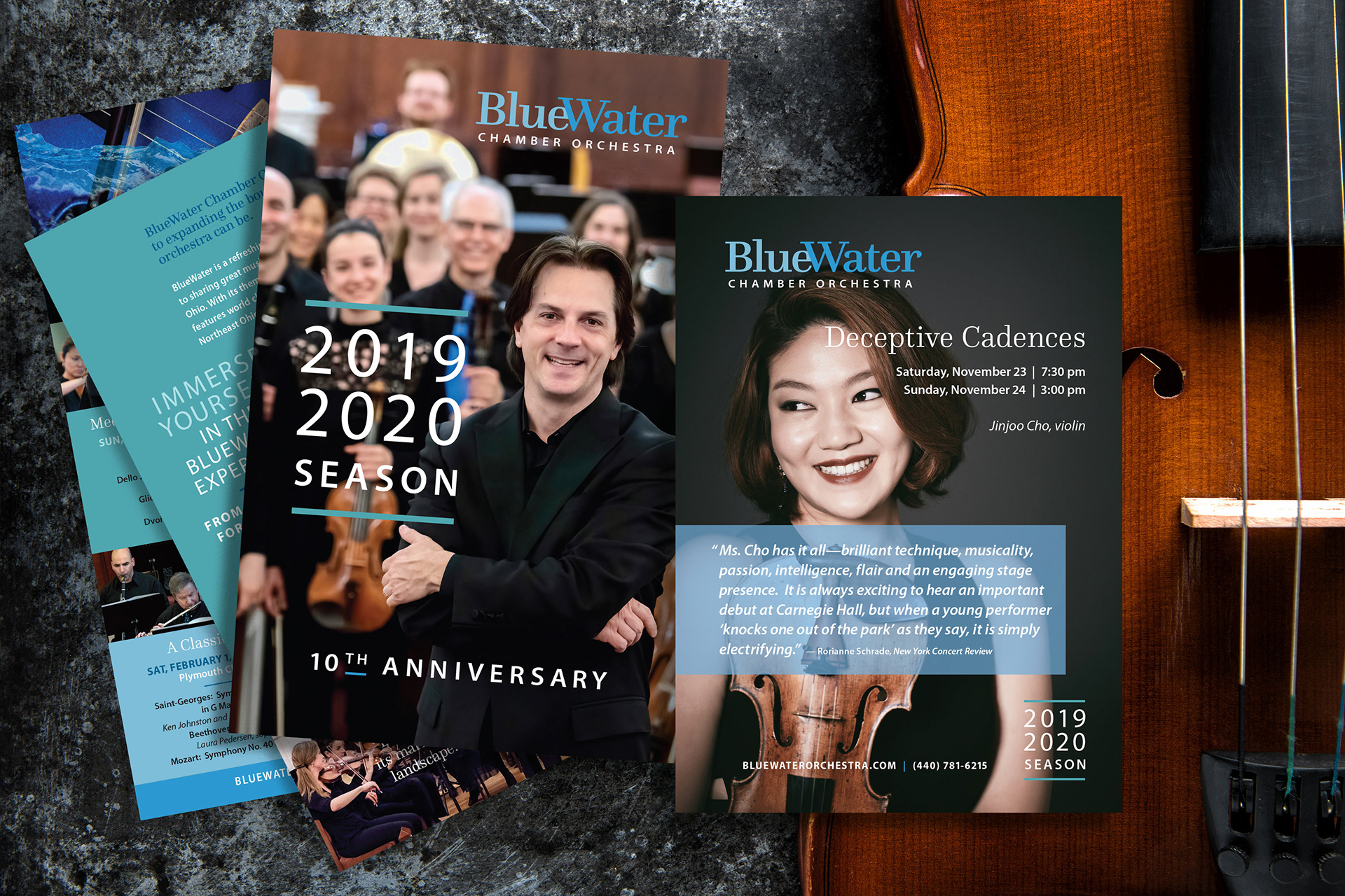 | Non-Profit Orchestra Marketing | WordPress Website | Social Media | E-Marketing | With a love of classical music at our core, working with BlueWater Chamber Orchestra to achieve their mission has been an incredibly rewarding experience. Welcoming new audiences while serving established chamber music aficionados, BlueWater performs inspiring music at various venues across northeast Ohio. Now celebrating their 10th anniversary, BlueWater is beginning a new era of creative initiatives and educational experiences under the leadership of globally renowned Artistic Director Daniel Meyer, a native Clevelander. Lesko Design, partnering with BlueWater's marketing consultant, Leo Zimmerman, participates in concept development and undertakes creative design and promotional efforts for each season's four primary concerts. This includes the season brochure and concert programs, as well as each concert's email marketing, social media initiatives and postcards. Special funding in 2019 enabled BlueWater to invest in a newly designed, responsive, WordPress-built website that beautifully and functionally expresses their artistic expertise and brand, as well as integrating ticket sales and donations efficiently. Lesko Design was instrumental in undertaking this new creatively inspiring design and site-build and continues to maintain and expand upon it.