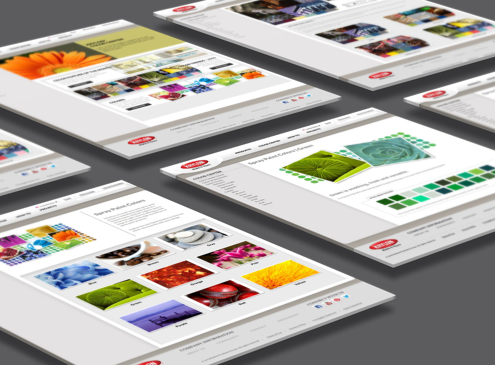 | Consumer Interactive Design | The development of a responsive design website for Krylon, spray paint innovators headquartered in Cleveland, was undertaken by a team of experts in diversified areas of the industry with a range of objectives for the site. UX designers and developers established the structure, content flow and navigation of the site, while Krylon branding initiatives were established. With this underway, Ms. Lesko was brought in to provide visual and interactive design for the Color Center portion of the site to make it engaging to a consumer audience, utilizing Krylon’s color mood boards and color families.